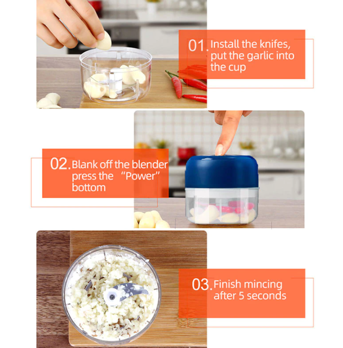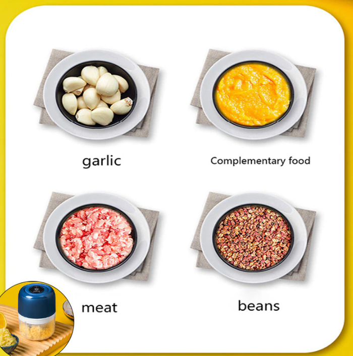 Оснащенный двигателем мощностью 30 Вт и набором лезвий из нержавеющей стали, этот мини-аккумуляторный электрический измельчитель поможет вам выполнять небольшие и быстрые работы, например измельчать чеснок, перец, овощи, зелень, орехи и т.д!