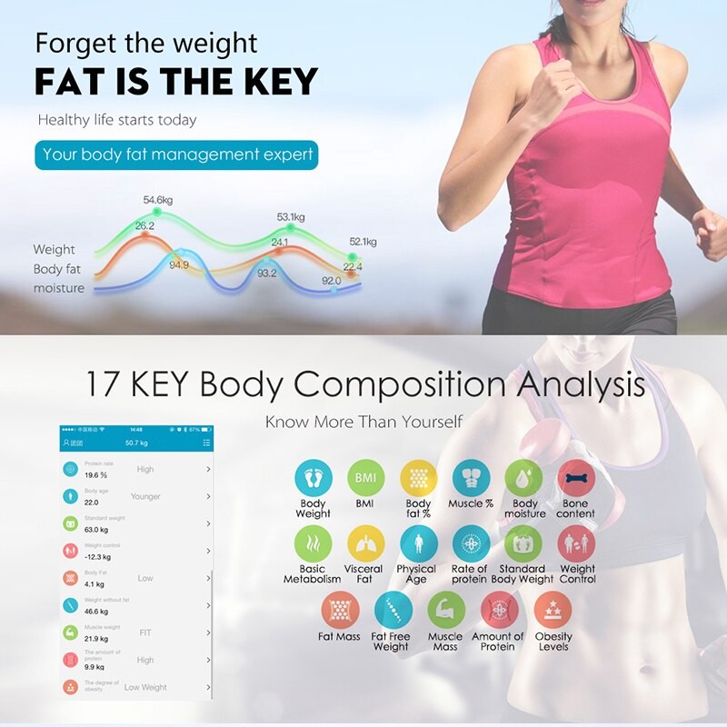 Напольные умные весы Bluetooth несколько программ ,жир,каллории,вода