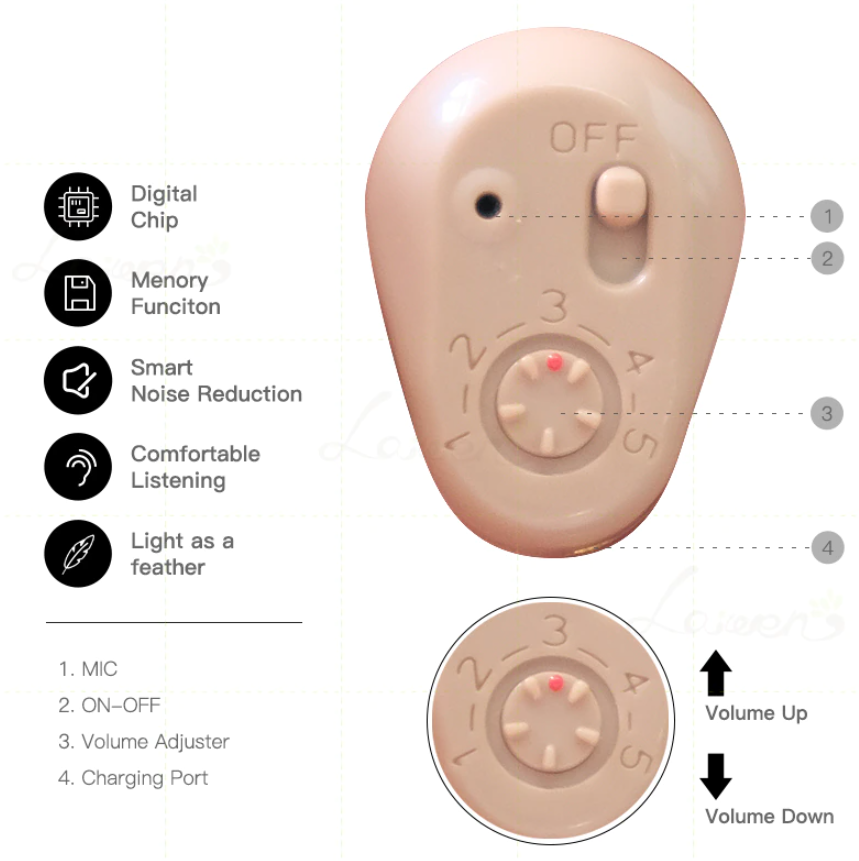 1. Слуховой аппарат поставляется с перезаряжаемой функцией, нет необходимости менять аккумулятор.