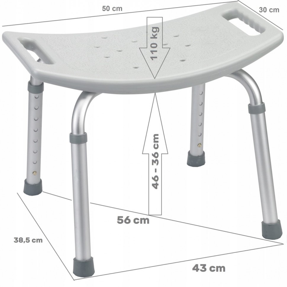 Стул для ванной: оптимальное удобное сидение, прекрасно подходит для большого веса, по высоте регулируется.